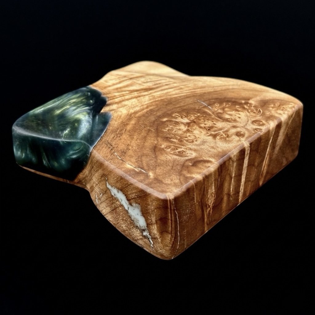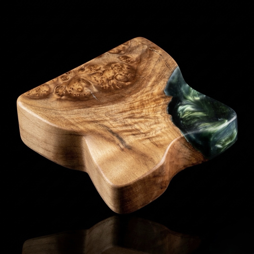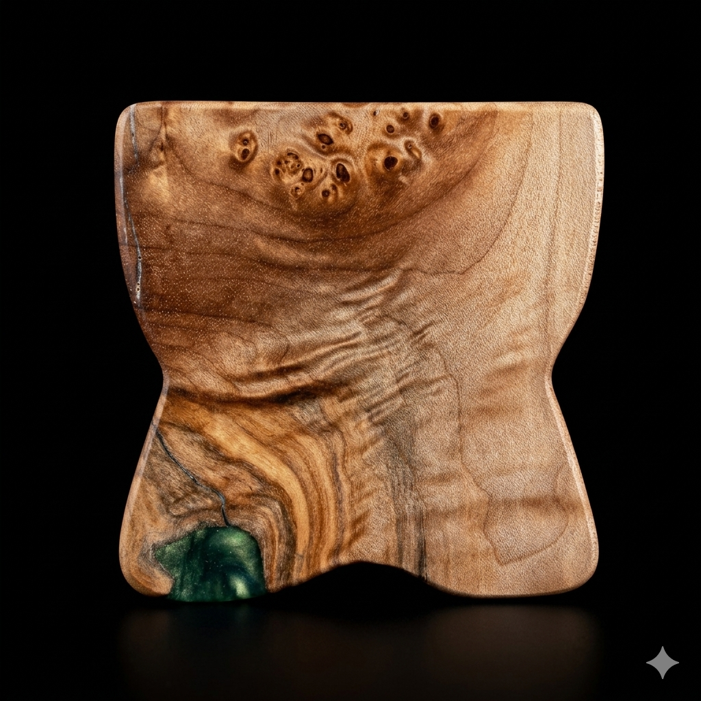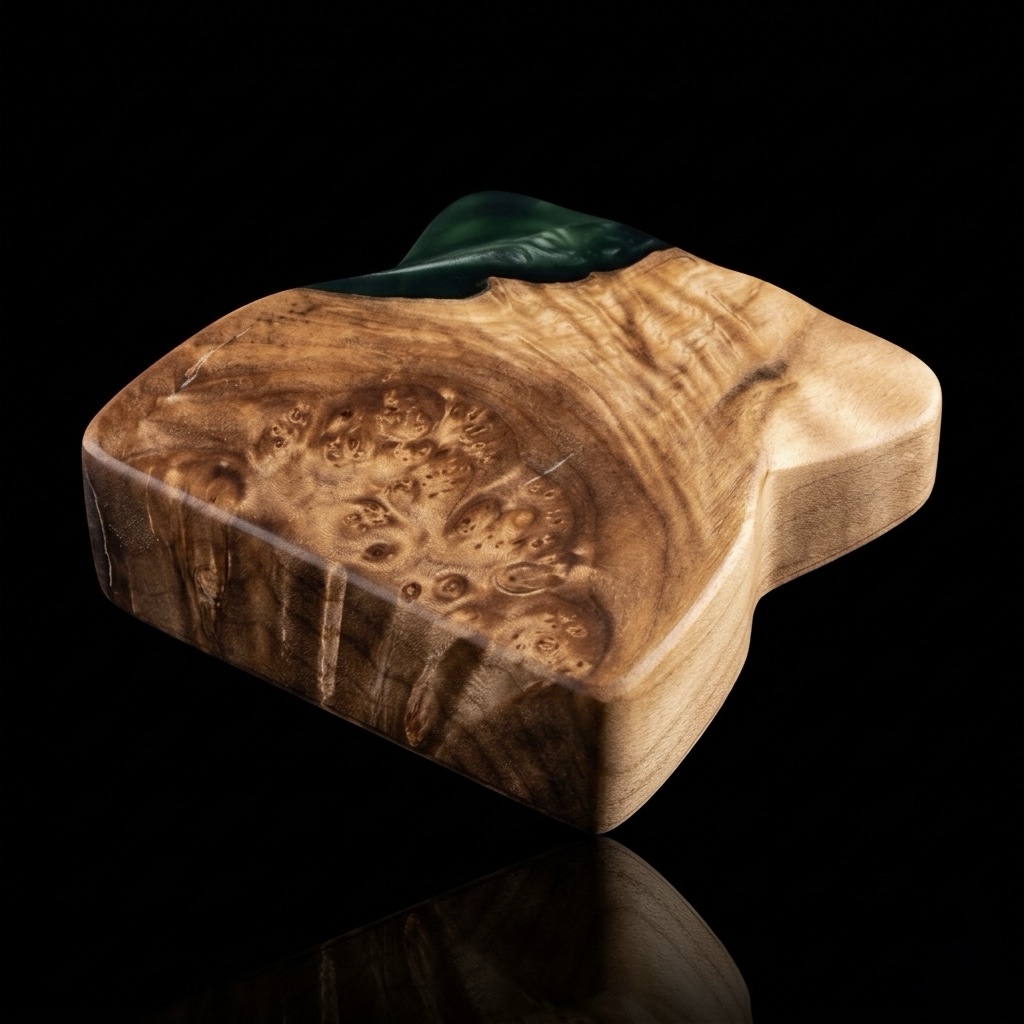 * Exotic Burl Wood: Selected for its dense figure and complex grain pattern, ensuring every angle reveals something new.
